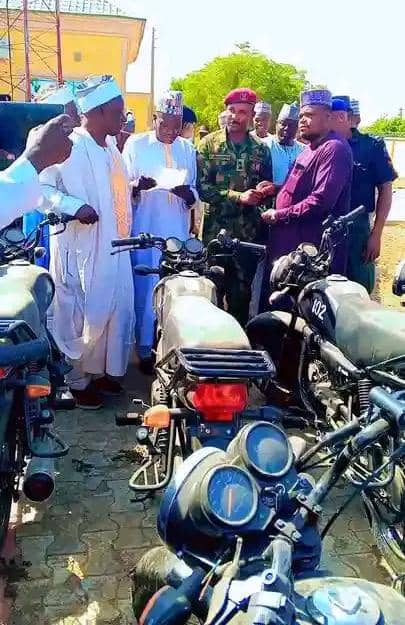 The Chairman of Jibia Local Government, Hon. Sirajo Ado Jibia, has donated two new HERO motorcycles to the Hisbah Board in Jibia to support their daily operations and community security efforts.