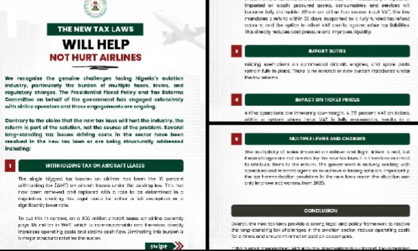 The Federal Government has moved to allay fears within Nigeria’s aviation sector, insisting that the new tax laws are designed to ease costs, stabilise operations, and strengthen airlines—not cripple them.